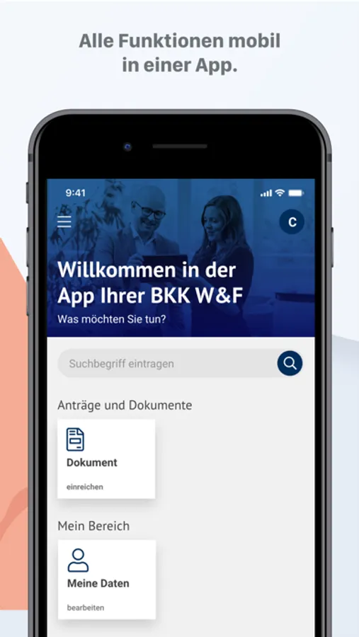Mit dieser App können Kunden schnell und datenschutzkonform Informationen mit der BKK W&F austauschen. Im Mittelpunkt steht ein sicheres Nachrichtenpostfach mit Dokumentenupload. Ergänzt wird es um weitere Funktionen rund um die Übermittlung von ärztlichen AU-Bescheinigungen, die eigenständige Erzeugung von Bescheinigungen und die Stammdatenverwaltung.