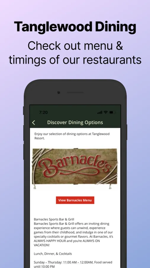 - Easy in-app scheduling for future stays at the Tanglewood Resort.
