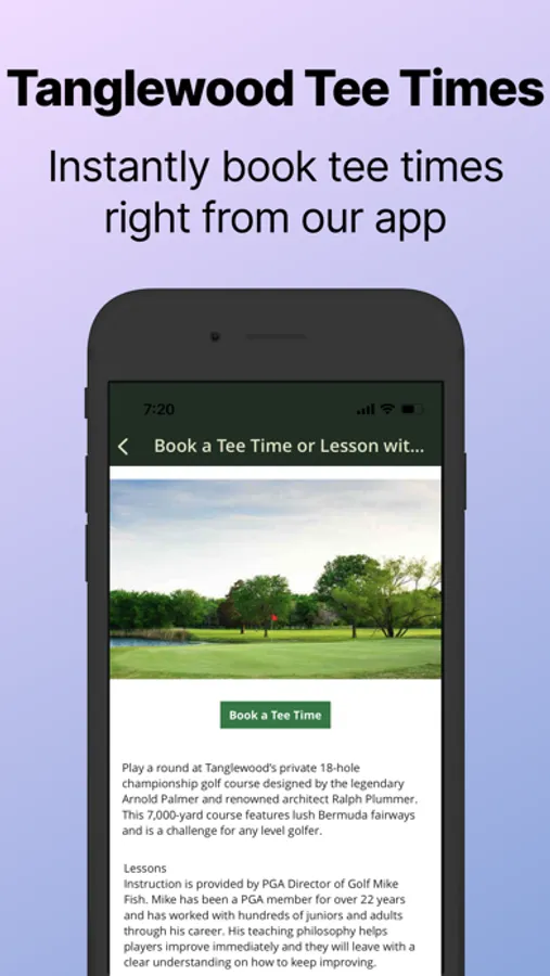 The Tanglewood Resort App also uses Third Party sites such as Acuity Scheduling for activities scheduling and the Allcal App for golf tee times. Separate terms and conditions apply.