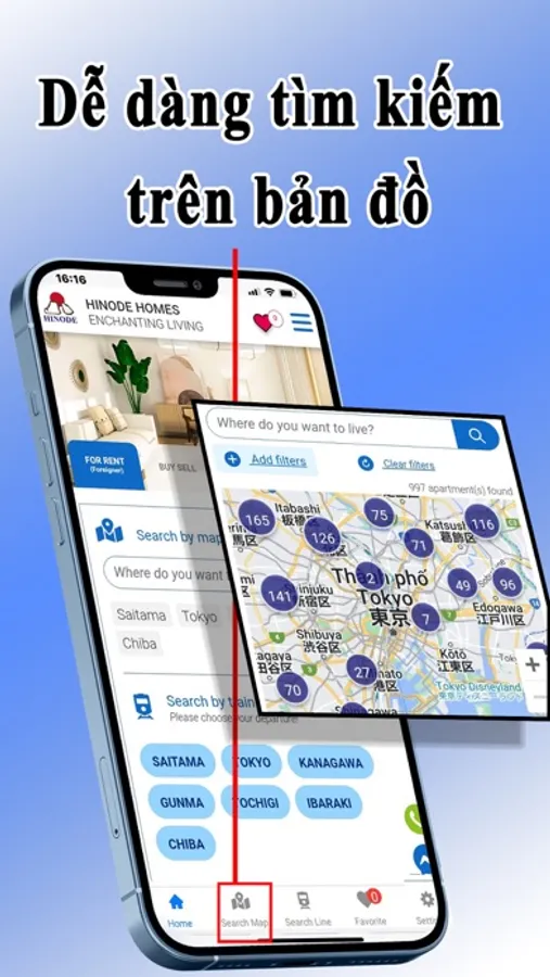 - Bạn có thể dễ dàng tìm nhà theo bản đồ 1 cách trực quan, sinh động dễ hiểu nhất