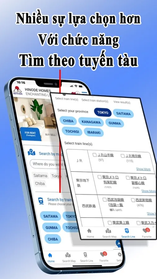 - Bạn có thể dễ dàng tìm nhà theo tuyến tàu