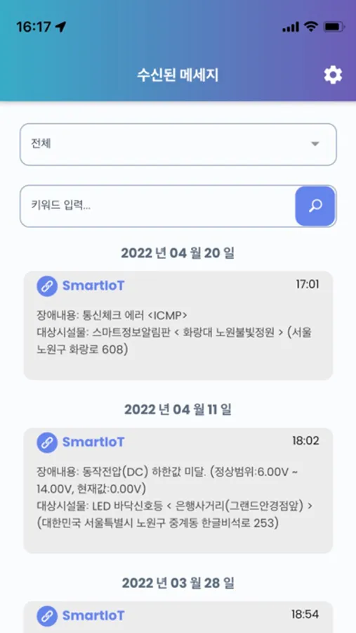 (주)솔랩스의 주요 서비스에서 전송된 비즈니스 알람을 수신/관리 합니다.