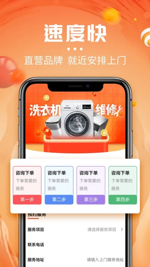 【线上预约,方便快捷】用户可通过APP一键预约下单,极速上门维修;