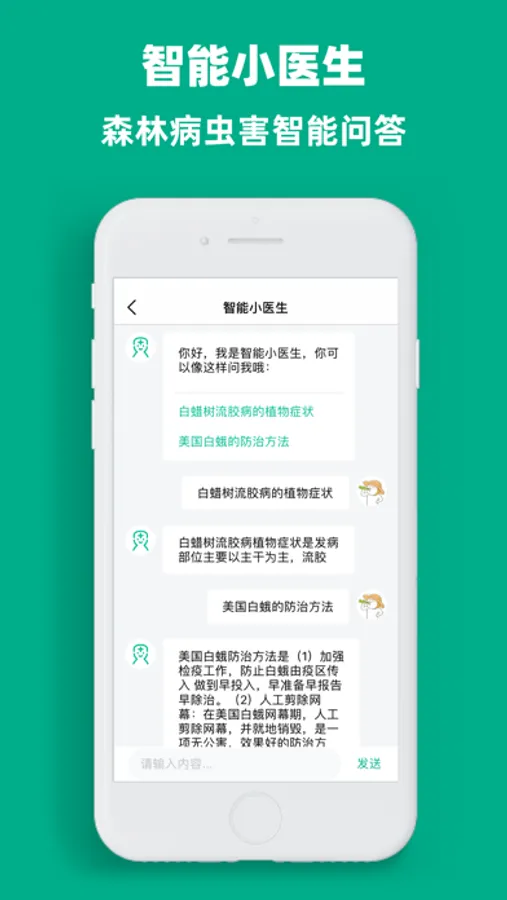 北京森林医院是北京市园林绿化大数据中心主推的森林保护手机应用。针对北京市主要林木,收集并整理了常见病害虫害及其防治信息,提供人工智能病虫害识别、病虫害百科、社区问答和专家咨询等功能,可帮助客户认识并科学治理病虫害,助力北京森林和生态保护事业。