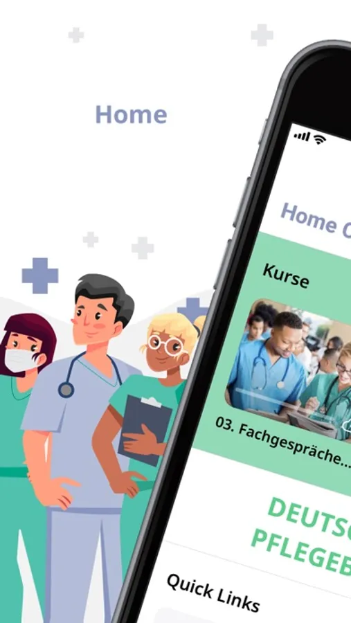Commuio Health App bietet einen Blended-Learning-Berufssprachkurs für die Entwicklung kommunikativer Kompetenzen für ausländische Pflegekräfte, Auszubildende, Hilfskräfte und FSJler an. Die App unterstützt sie bei der Pflegeausbildung oder beim Anpassungslehrgang.