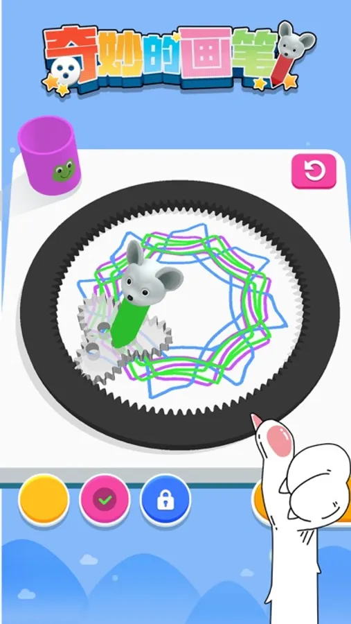 《奇妙的画笔》是一款超好玩的齿轮旋转作画小游戏。在游戏中,玩家可以通过任意选择画笔颜色,按住屏幕实现齿轮旋转做画来实现图案的对称性和完整性。每完成一副艺术品,就可以选择合适的买家进行交易,十分有趣.