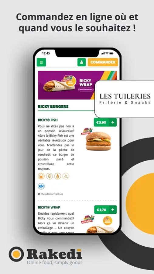 + Toujours disponible : Vous pouvez commander en ligne à tout moment. Évitez les files d'attente et commander depuis votre fauteuil, votre voiture, sur la route, au travail, à l'école, ...