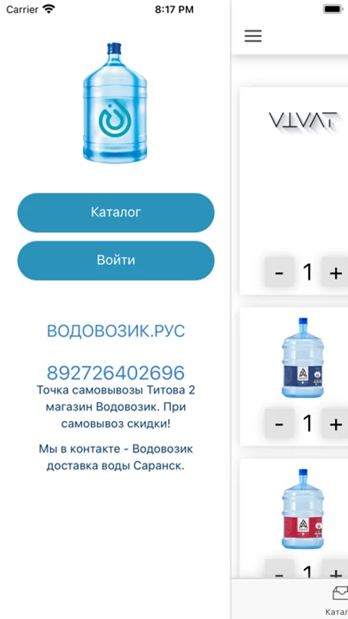 Приложение для заказа воды в Саранске, бутилированная вода с доставкой по городу Саранск на дом и в офис!
