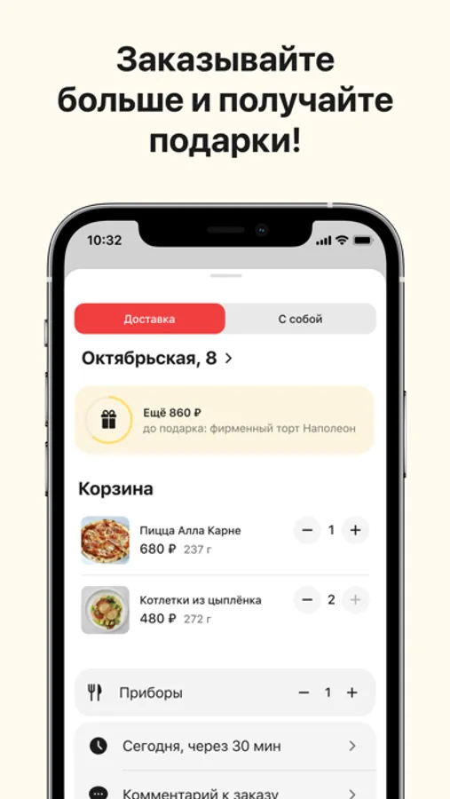 Заказывайте любимые блюда домой или в офис легко и просто через мобильное приложение.