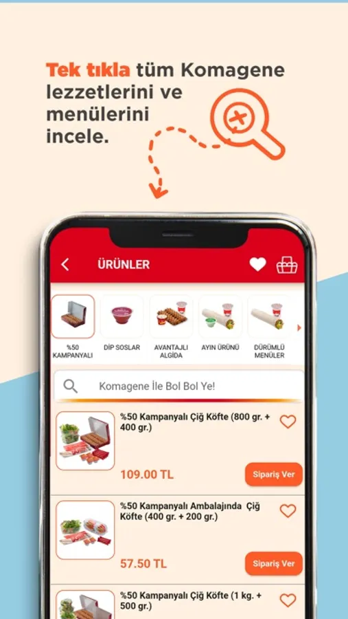 Tek tık ile çiğ köfte çeşitlerimiz başta olmak üzere tüm ürünlerimizi inceleyebilirsiniz.