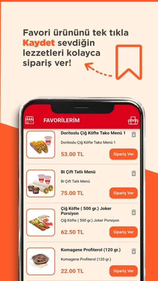 Uygulama sayesinde favori ürünlerinizi kaydedebilir, sonraki kullanımlarınızda kolayca sipariş verebilirsiniz.