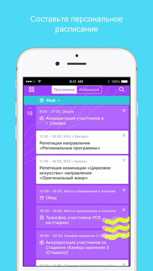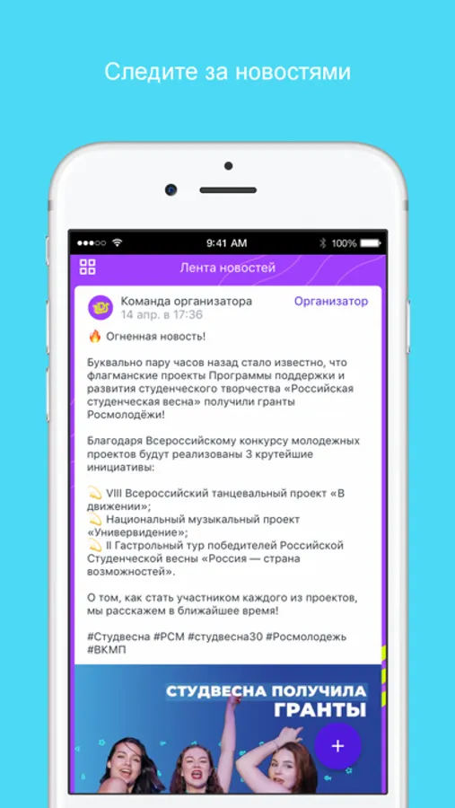 - быть в курсе всех новостей. Пользователям будут приходить push-уведомления о старте основных мероприятий и активностей