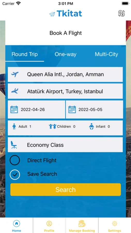 - Save your flights and search , you can access your account and find your bookings