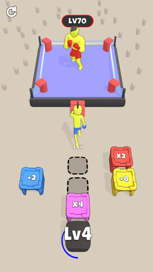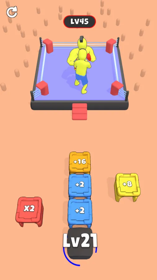 Move boxes with drag. Merge boxes, increase your boxer's level, and defeat your opponent.