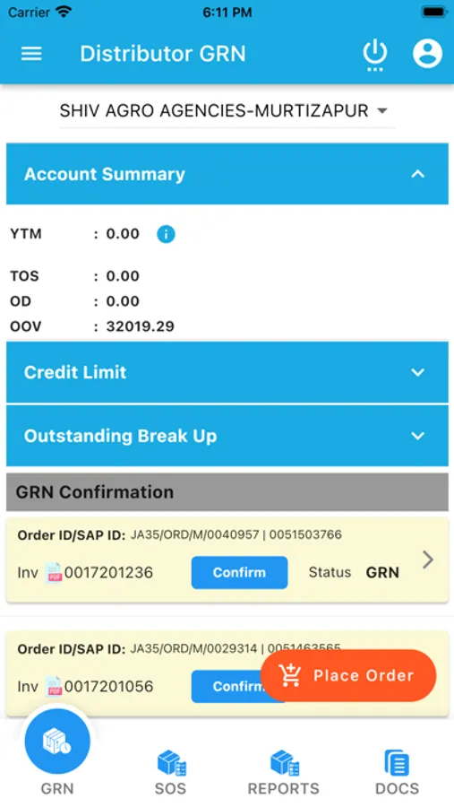 Reports - Distributor can see the invoice details for that dispatch orders.