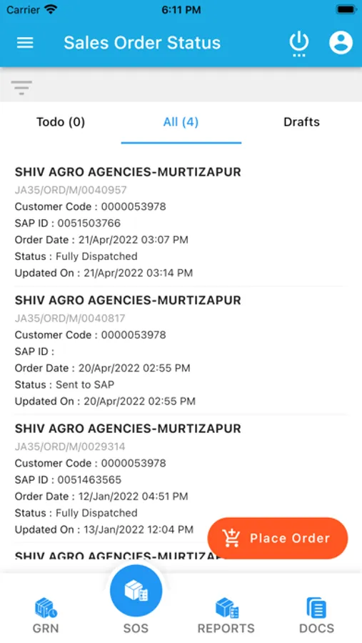 Distributor can do place an order to territory manager, once the order is placed it will go for territory manager approval.
