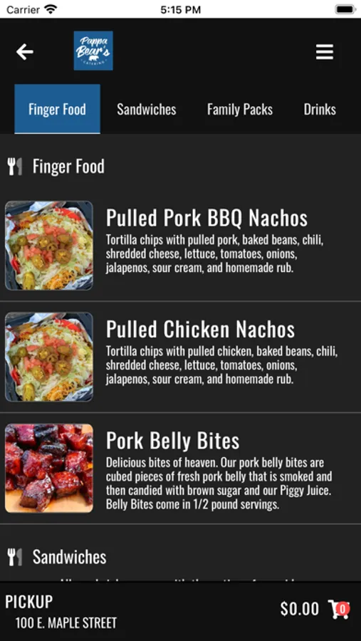 Use our convenient app for ordering your favorite item from Pappa Bear's Catering right from your phone! Check our current location and menu items for the day. Earn Loyalty Points with each purchase good for discounts! You'll also receive coupon codes periodically that can be used at checkout.