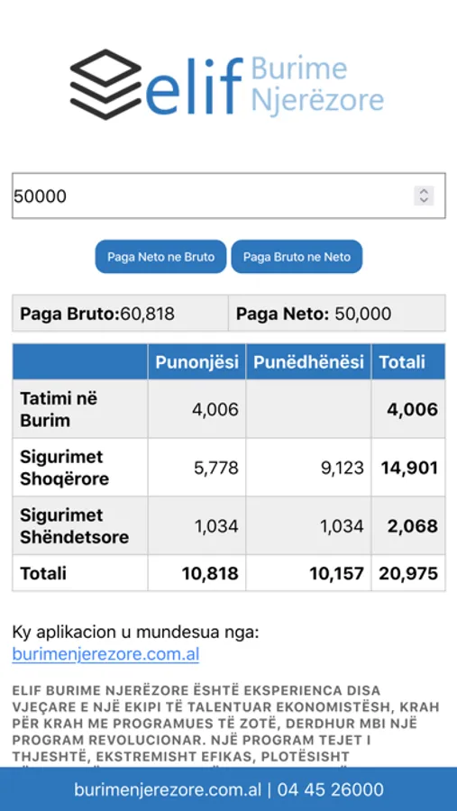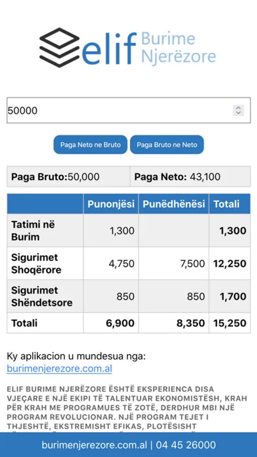 Paga Ime eshte nje aplikacion qe ju mundeson te llogarisni pagen nga neto ne bruto dhe nga bruto ne neto, llogarit sigurimet shoqerore dhe shendetsore te punedhenesit dhe punemarresit.