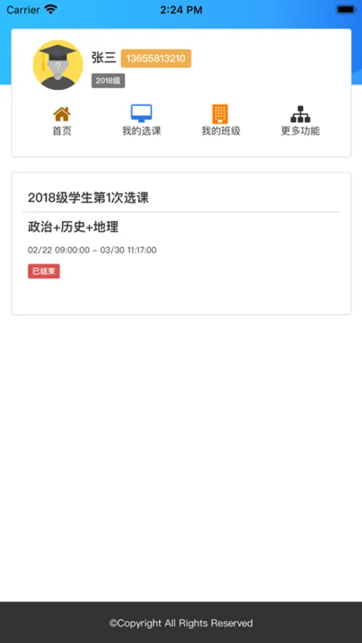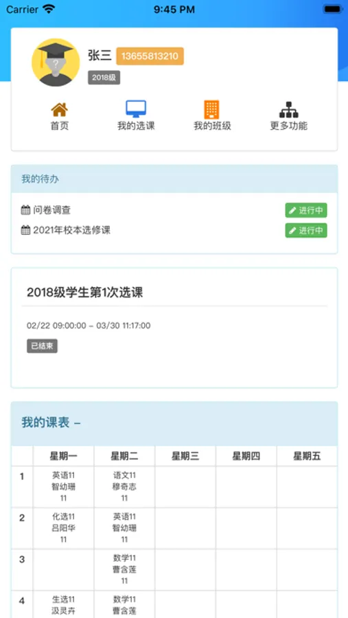 该系统主要针对普通高中学生在家完全学校课程选课,查询课表等教学相关活动。主要数据来源于学校教学管理系统的数据接口