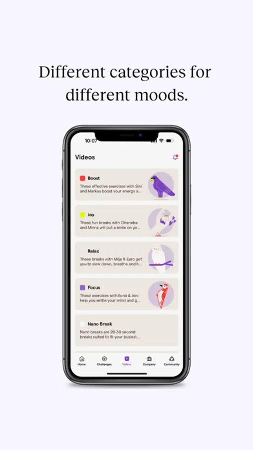 Fun & Quick Exercises: Choose from a variety of activities, from stretches to quick dances, all designed to fit perfectly into short breaks.