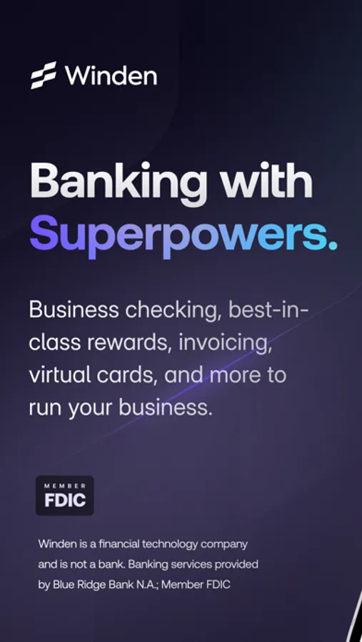 Winden is the banking app built for the digital businesses and entrepreneurs of today. Whether you are a freelancer or own a Shopify business, we reimagined banking to help you make more money. Get a FDIC-insured business account, virtual and physical debit cards, free transfers, and more for no monthly fees! Open an account today whether you are a sole proprietor, own an LLC or C-Corp without any credit check.