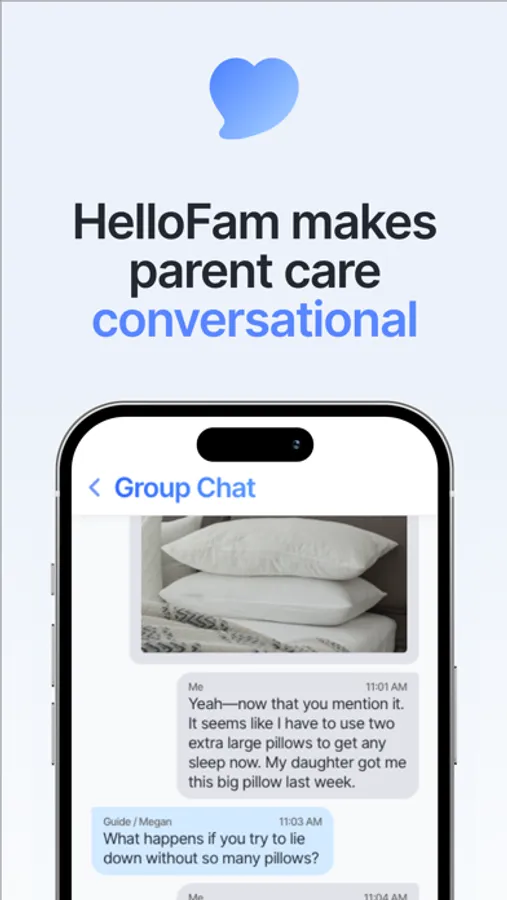 HelloFam is an app for remote parent care. We offer a personalized program to help you keep track of and proactively manage your parent's health and medical needs. Whether you live close by or far away, HelloFam can help you stay up to date on all aspects of your parent's well being.