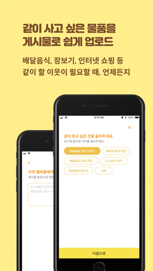 3만원 이상 사야 무료배송이었다고요? 이제는 걱정하지 마세요. 이웃에게 물어보고 같이 사요!