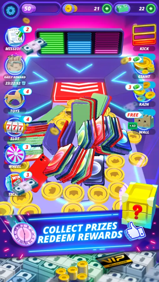 Collect items and upgrade your coin dozer machine for even better rewards & prizes!