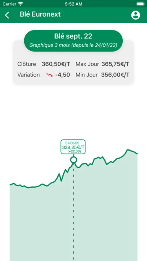 - les cotations Euronext différées de 15 min (blé, maïs et colza)