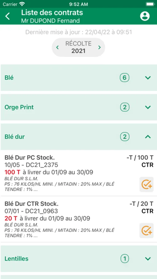 - la consultation des informations relatives à votre commercialisation (contrats de vente par culture, livraisons avec les critères qualitatifs et synthèse)