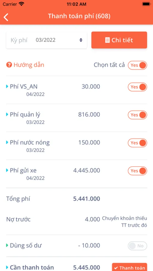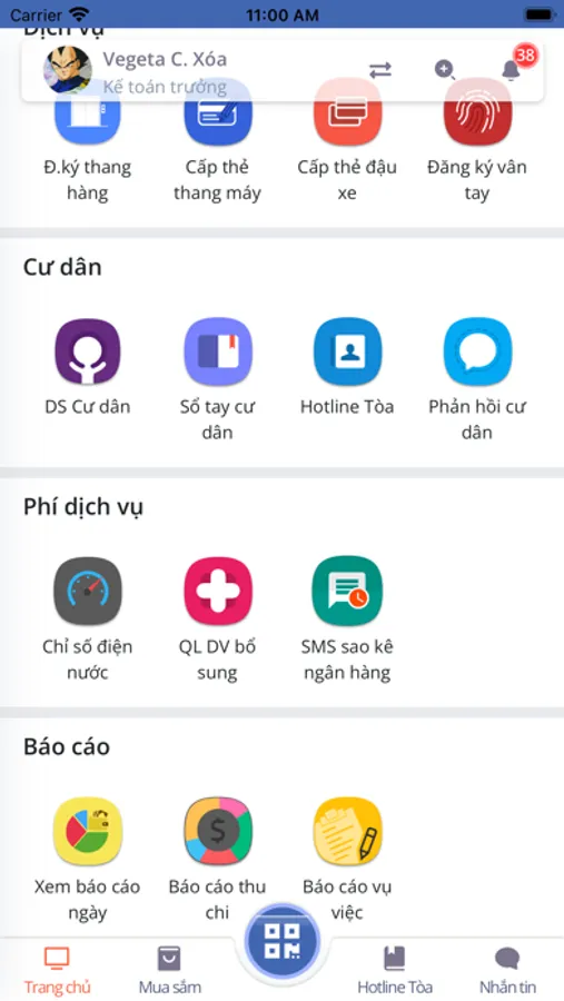 - Đăng ký dịch vụ cơ bản: Quản lý và giám sát cư dân sử dụng dịch vụ cơ bản như thang máy, gửi xe, gửi đồ,... đơn giản, chặt chẽ.