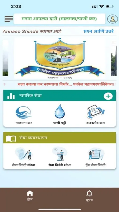 c) Download notice, Tax Valuation receipt for properties & water bill payment.