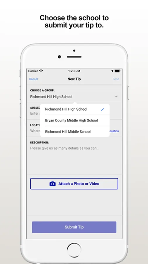 The BryanCS Tips app provides citizens the ability to submit anonymous tips to the Bryan County, GA Schools. The app also displays organization web and social media content.
