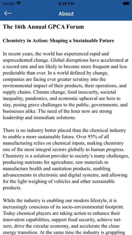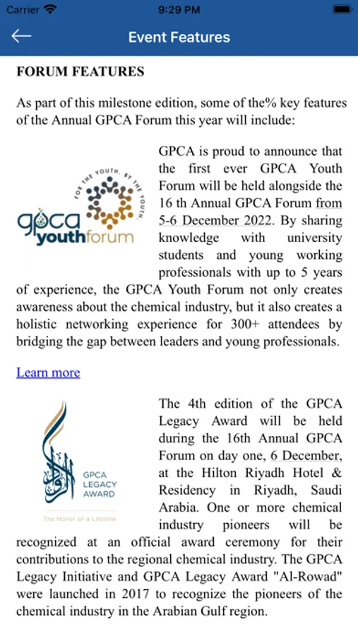 The Visitor Mobile Application for GPCA Networking will showcase the Event information, Program agenda, Speakers, Exhibitors , Sponsors and Partners. Visitors would be able to sign-in and set their Personal Agenda and Favorite Speakers, Sessions and interact and connect via social media and chat.