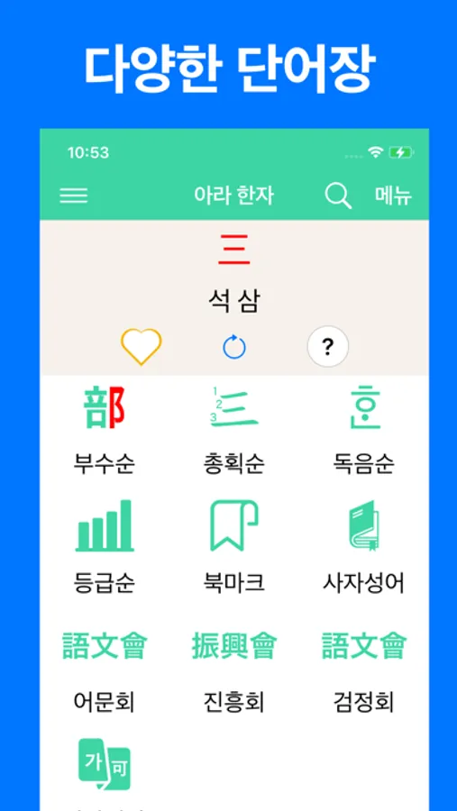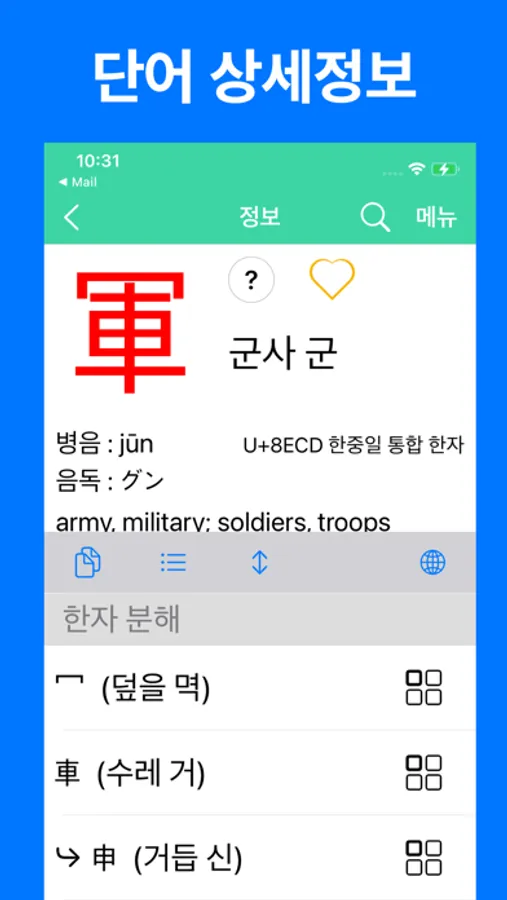 복잡한 한자들도 구성하고 있는 한자들을 분해해서 보여줘서 쉽게 이해할수 있습니다.