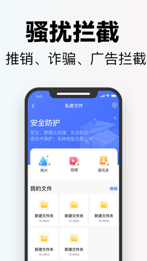 智能拦截:智能识别来电手机号码,自动拦截,帮你免受陌生来电的骚扰;
