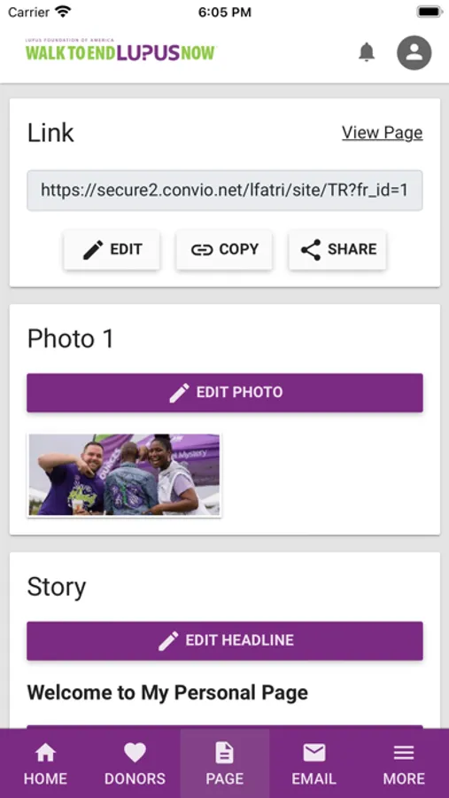 • Update your fundraising page with your story and/or a photo using a photo stored on your device