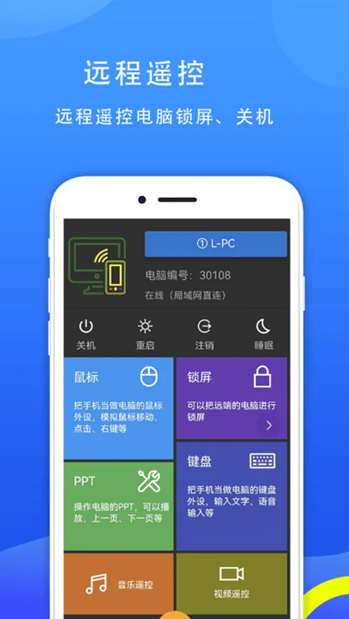 提供了PPT遥控、音乐和电影的遥控,可以用手机模拟电脑的键盘、鼠标。
