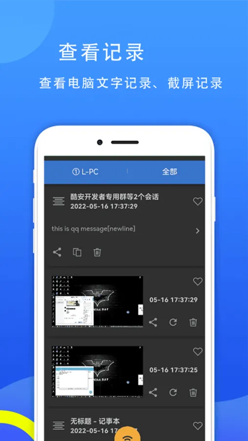 这是一款电脑监控小能手APP,可以查看电脑的键盘记录、文字记录、截屏记录,并能够远程进行锁屏、关机。