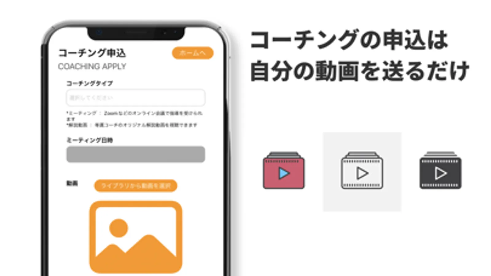 コーチングの申込はランニング動画を送るだけ。24時間365日申込可能です。
