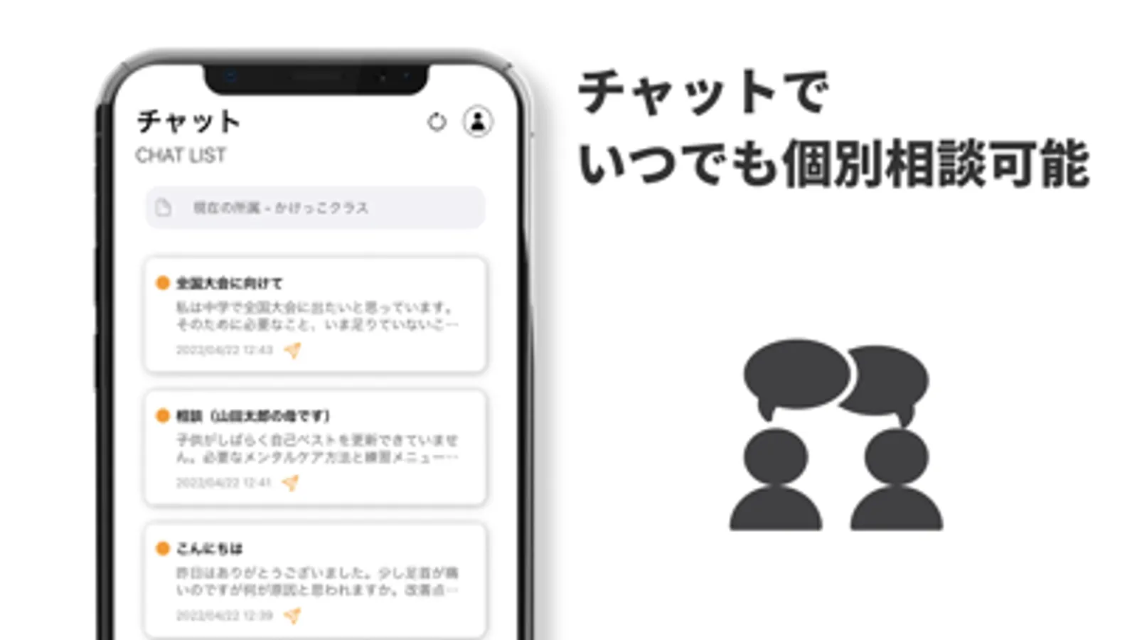 また、チャット機能も搭載されておりますので、いろいろな悩みを個別でコーチに相談することができます。