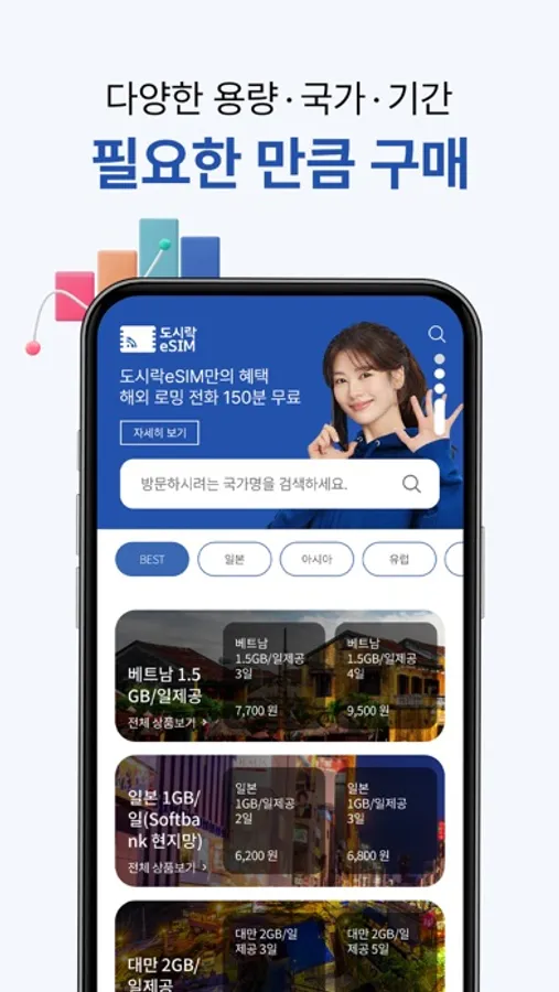 해외로밍도 국내데이터도 도시락eSIM으로, QR스캔만 하면 로밍준비 끝! 가장 가벼운 여행을 떠나보세요.