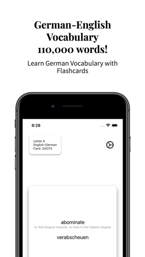 Learn or improve your German vocabulary with this flashcard app. Try to guess the translation of the word or expression. A tap on the card and the translation appears under the word instantly. You wil learn German vocabulary at your own pace. A swipe on the right or the left to show the next word.