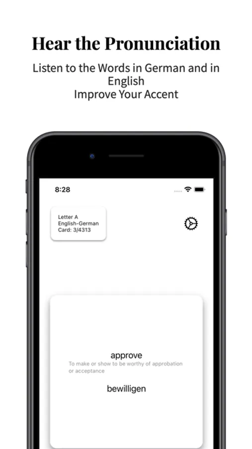 Words and their translation are pronounced in both languages (English and German) so that you can hear the pronunciation and improve your German accent.