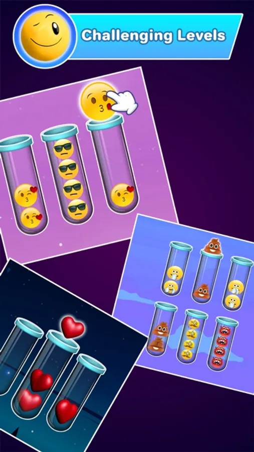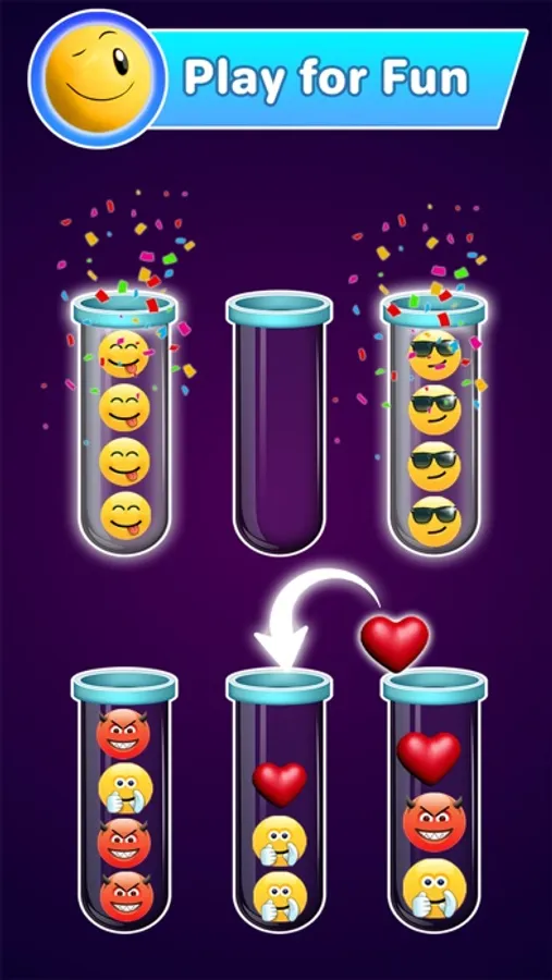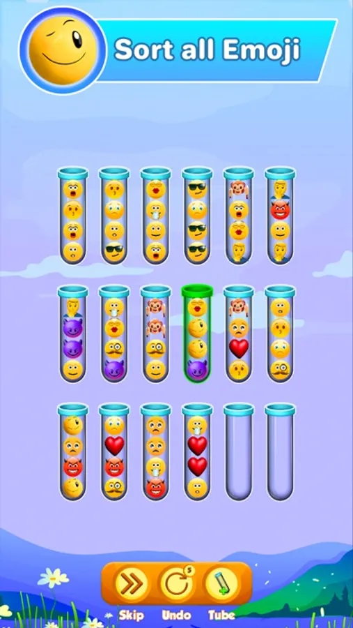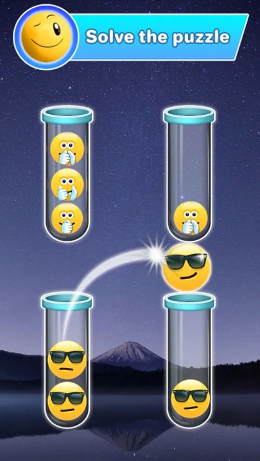 Emoji Sort Puzzle is a fun and addictive puzzle game! Try to sort the colored balls in the tubes until all balls with the same color stay in the same tube. A challenging yet relaxing game to exercise your brain.