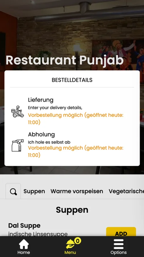 - Durchsuchen Sie die Speisekarte des Restaurants und sehen Sie sich alle anpassbaren Optionen im Voraus an