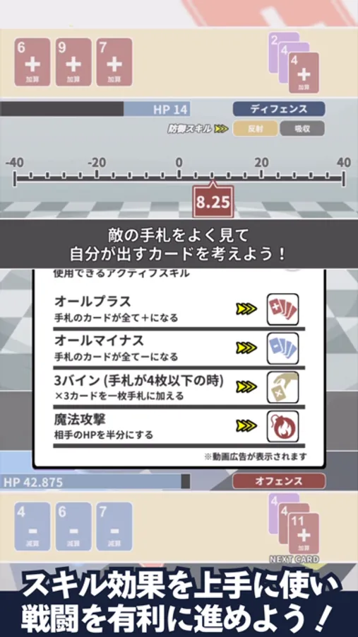 ・ On the offense turn, move the number line in the positive direction and aim for great damage!