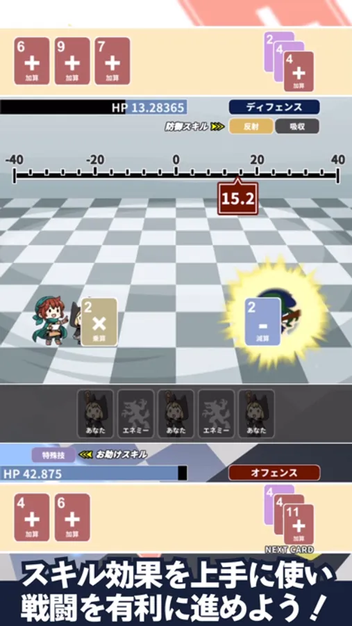 ・ On the defensive turn, move the number line in the negative direction and repel the damage!