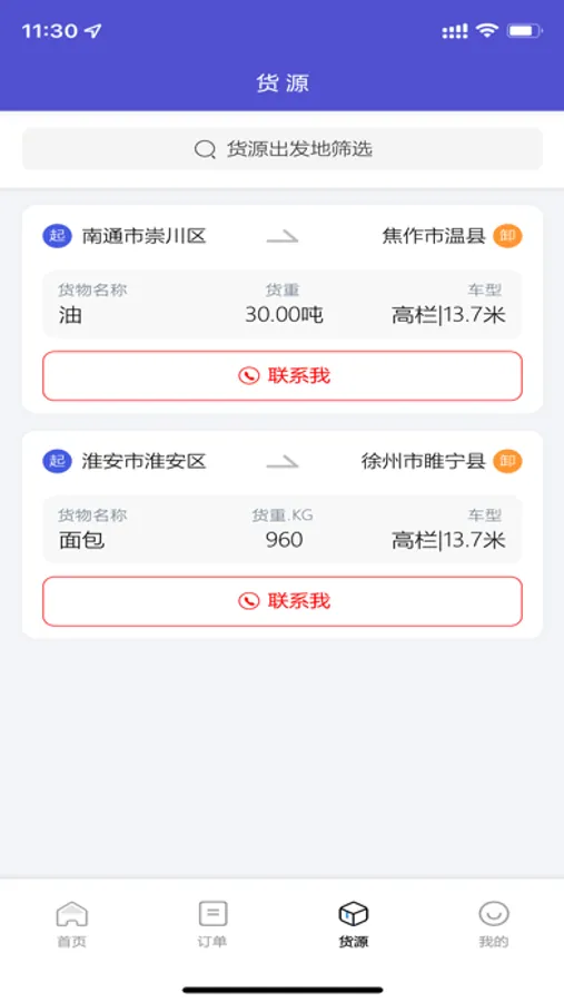 用户可以在移动端实时查询、获取物流信息,并对筛选出来的物流信息进行线上或线下联络确定运输合作。发布:货主发布物流信息;匹配:智能匹配车货信息;调度:统一调度后推送至用户手机;监控:运输过程实时监控