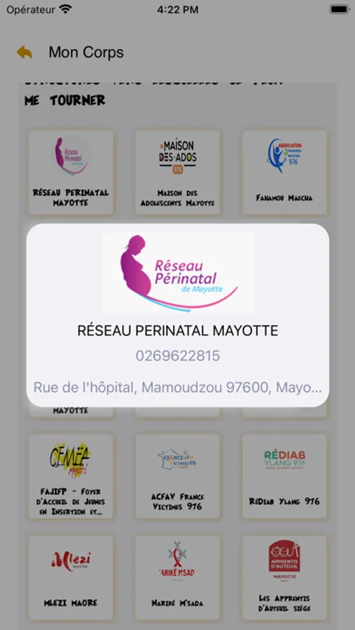 L’application comprend une liste de services d’accueil et de soins – actualisée en fonction des lieux des utilisateurs –